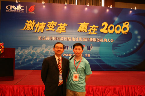 為了進(jìn)一步促進(jìn)我國互聯(lián)網(wǎng)地址資源的普及與發(fā)展,2008年1月22日,我司副總經(jīng)理趙令文參加了中國互聯(lián)網(wǎng)絡(luò)信息中心(CNNIC)在海南三亞舉辦的“第五屆中國互聯(lián)網(wǎng)絡(luò)地址資源注冊服務(wù)機(jī)構(gòu)大會”。來自全國各地以及海外的100多家CNNIC認(rèn)證的注冊服務(wù)機(jī)構(gòu)代表和合作伙伴參加了本次大會,共同就中國互聯(lián)網(wǎng)地址資源的管理、服務(wù)、推廣經(jīng)驗(yàn)及應(yīng)用發(fā)展前景進(jìn)行了充分溝通與交流。