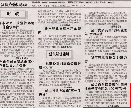 威龍商務(wù)網(wǎng)上榜“2007中國行業(yè)電子商務(wù)網(wǎng)站100強(qiáng)”