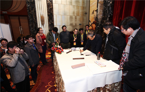 據了解,本次公益活動以“展示書畫 奉獻愛心 共創(chuàng)和諧”為主題,融合“公益展示”、“慈善拍賣”、“交流筆會”等環(huán)節(jié)?,F(xiàn)場展出并拍賣了包括50位藝術大師的 300 余件作品。